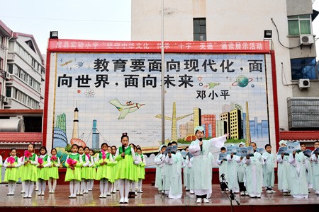 活动中,低年级的小朋友诵读了中华蒙学经典《三字经》《弟子规》,其他年级以《中国梦!我的梦》《追月》《腾飞吧!祖国》《少年中国说》为主题诵读国学经典,弘扬了民族气概,展现了自我风采。(陆晓月 杨可 摄)