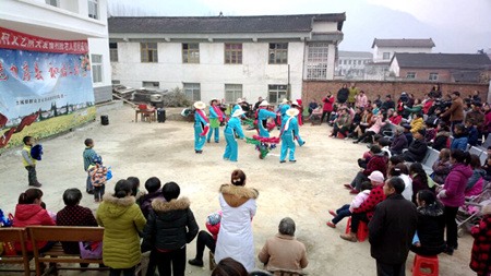 近日,土城村文艺宣传队深入通省福利院进行慰问表演,与福利院老人共庆元旦。文艺队员们还为五保老人们分发了果品,卫生院为他们提供免费体检,邮政局为福利院捐赠了米、食用油等物品。此次活动让文艺扶贫、健康扶贫在福利院里得到了最真实的体现,五保老人们纷纷露出辛福的笑容。 (吴勇星 摄)