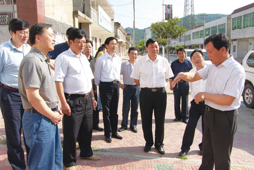 县长沈明云陪同省国土资源厅厅长杜云生(右一)调研国土资源工作