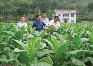 7月9日,上龛乡党委书记李奎带领财政、林业等部门负责人,到边远村察看烟苗的长势情况。该乡为着力打造以烤烟为龙头产业,带动全乡经济大发展,乡党委、政府及时深入烤烟专业村,解决烟农在种植、加工、销售中存在的一些实际困难,让他们以严要求、高标准、高质量烤出精品烟叶。