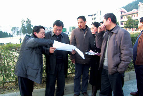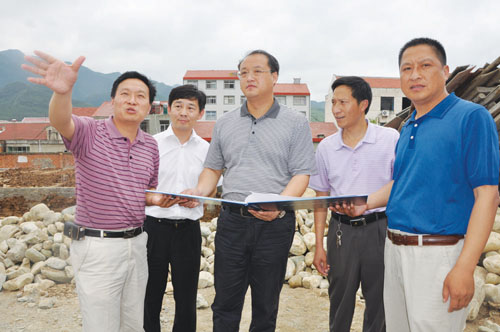 镇党委书记丁杰(中)、镇长张昌军(左二)在青峰中学检查指导工作