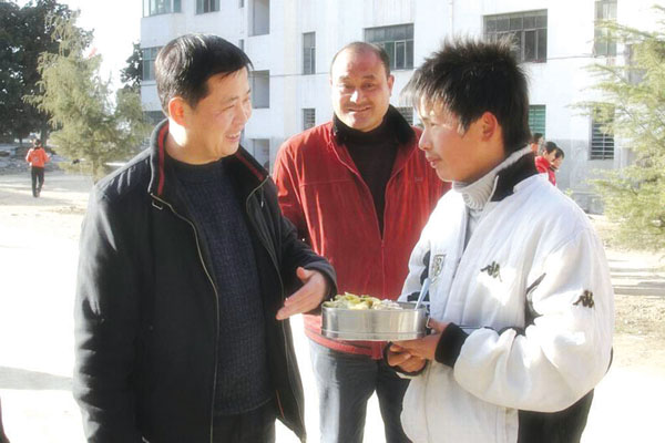 但是,生活中的他却又是另个模样,为了让学生能有更多的时间学习,他担当起了父母的职责,主动为学生打饭,负责其伙食。怕孩子不能好好照顾自己,他经常会拿出自己的体己菜来,与孩子们分享。
