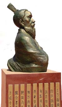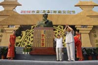 全国政协提案副主任王生铁(右二)、中国诗经学会会长夏传才(右三)为尹吉甫塑像揭幕。