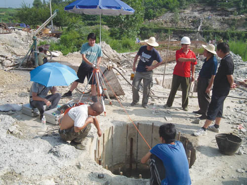 日前,在十房高速公路一期土建工程第十三合同段施工现场,武汉港湾工程质量检测中心的技术人员对已经浇灌结束的沙沟河5、6号大桥部分灌注桩质量进行超声波检测(如图),以保证工程的质量。超声波检测法是当前深孔桩基质量检测的最有效途径,其检测方法简单,技术人员只要将探头慢慢伸到声测管内,超声波便能从上到下将桩基的质量测得清清楚楚。通过检测可以判定桩的完整性、桩基缺陷位置及影响程度,判断桩端嵌固情况,从而科学、精准的分析桩基施工质量,消除质量隐患。