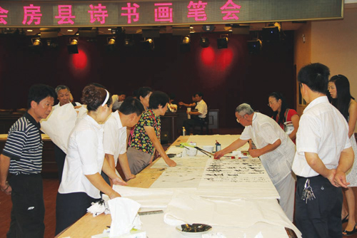 8月7日,县委、县政府在霖泓会议中心举办了中国诗经学会房县诗书画笔会。世界汉文化联合会执行会长钱明锵、华南师范大学副校长郭杰、湖北省书法家协会会员漆雕世彩、浙江省社科院徐儒宗、十堰市民协主席潘彦文等七名专家学者挥毫泼墨,书写了以诗经文化为主题的书法作品80多幅。县领导戢逢尤、曹明权、姚天国参加了笔会。