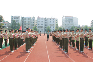 从本周开始,全县高中的高一新生开始军训,学生们将通过为期两周的军训磨炼意志,强健体魄,培养团队精神和集体荣誉感,为进入新的成长阶段做好准备。图为县一中的高一学生正在教官的指导下进行训练。(田兰兰 摄)