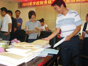 8月15日,全县20个乡镇(场)中心学校财务人员齐聚县教育局,对各乡镇中心学校财务帐务进行面对面的评价。据了解,县财政局、县教育局从7月中旬开始,开展了为期一个月的乡镇中心学校财务帐务展评活动,旨在进一步强化学校会计基础工作,规范会计行为。图为与会人员在翻阅参展的账本和报表。(叶小侠 袁锐 摄)