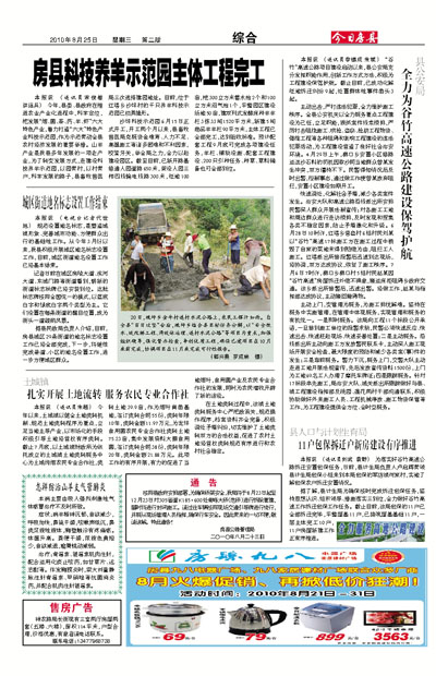 沙坪科技示范园6月15日正式开工,开工两个月以来,县畜牧兽医局克服资金难筹、人力不足、高温施工等诸多困难和不利因素,咬紧牙关,举全局之力,全力以赴建设园区。截至目前,已新开路基修通入园道路650米,架设入园三相四线输电线路300米,征地100亩,挖300立方米蓄水池2个和100立方米沼气池1个,平整园区建设场地50亩,建双列式发酵床种羊羊栏3栋33间1520平方米,新建5间商品羊羊栏90平方米,主体工程已全部完工,达到验收标准。预计配套工程9月底可完成各项建设任务,羊栏、辅助设施、配套工程建设、200只引种任务、种草、草料储备也可全部到位。