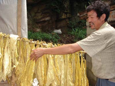 近年来,万峪河乡大力发展烤烟产业,大大促进农民增收。2010年全乡烟叶种植达2400亩,可实现产值350万元,预计人均增收近400元。图为万峪河乡小坪村烟叶种植大户邓青忠正在出炉烤烟。(周鸿 摄)