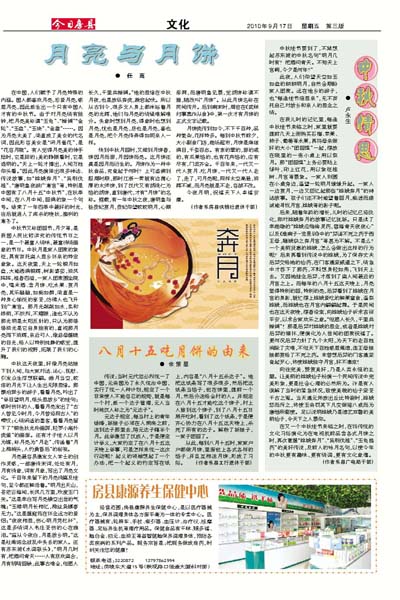 在又一个中秋佳节来临之时,在将传统的文化习俗演化为在电视机前品尝各式月饼之时,再次重温“嫦娥奔月”、“吴刚伐桂”、“玉兔捣药”的美好传说,及前人的咏月名句,以使今年的中秋更有趣味,更有情调,更有文化意蕴。 (作者系县广电局干部)