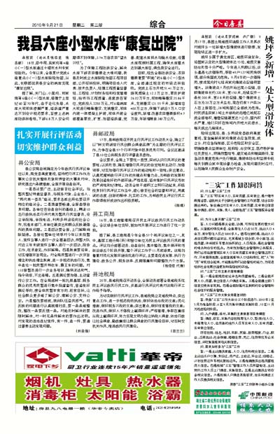 目前,担负全县防洪安全、农田灌溉重要“职能”的6座小(一)型水库,全部通过规定的市级达标验收。完成土石方开挖51.41万立方,浇筑混凝土12.3万立方,草皮护坡26.02万平方,坝体帷幕灌浆35.86千米,充填灌浆131.55千米,新增库容400万立方,保障下游近7万人口安全度汛,新增、改善农田灌溉面积4.7万亩,年新增粮食380万公斤。