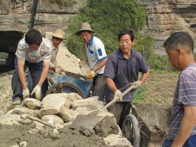 13日,姚坪乡化口村河堤维修现场,农民工热火朝天,一片繁忙。入秋以来,姚坪乡将基层组织建设与秋冬农业开发、第六次人口普查等阶段性工作同部署、同督导、同考核,做到两手抓,两手都要硬。目前,全乡已喷绘党务、政务、村务公开栏16块,维修村级水毁公路49公里,新发展茶叶、柑橘等经果林1200亩,全乡以党建促进经济社会发展的方式效果明显。(罗成林 陈正红 摄)