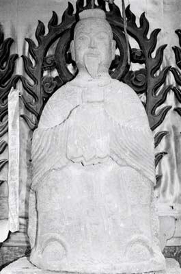 经专家确认,榔口乡齐心村万峰山为尹吉甫的故乡,该乡现存的古代岩壁石窟古建文物遗迹——尹吉甫宗庙宝堂寺,为尹吉甫故居。日前,万峰山村民在当地又发现一尊尹吉甫石雕像,像高一米。