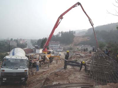 18日,在十房高速公路一期土建工程第十三合同段施工现场,一台三一重工混凝土泵车正伸长臂膀向沙沟河6号大桥左幅桩输送和浇筑混凝土(如图)。据了解,这是十房高速公路第十三标项目部响应建设单位号召,首次采用泵车喷注混凝土施工工艺。该项工艺的运用,对确保施工质量,提高项目建设速度发挥着极大的作用。