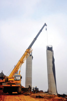 自去年11月18日全长64公里的十房(十堰至房县)高速公路动工以来,各施工标段克服施工环境恶劣、征地拆迁难度大的困难,在严格按照优良工程标准施工的前提下,开足马力,鼓足干劲,掀起高速公路建设高潮,使各项工作稳步推进。笔者在各施工现场看到,一台台挖土机正在繁忙地工作,一辆辆工程车穿梭在工地间,到处是一片红红火火的施工场面。图为红塔乡高枧收费站施工现场。