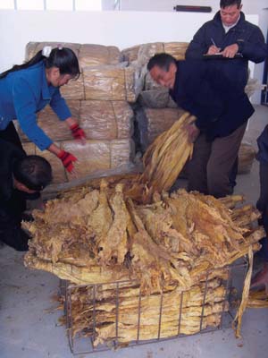 上月28日,万峪河乡烟叶收购站开秤收烟。当天烟农交售烟叶达18000斤,实现了“开门红”。据悉,今年,万峪河乡共种植烟叶2000亩,预收购烟叶4800担,可实现产值300万元,拟创税收60万元。(郭敏 张伟 摄)