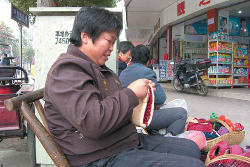 精美的秀工、手纳的鞋底令人爱不释手。每年秋冬季节,我县大街小巷就会出现一批出售手工棉布鞋、毛线鞋的摊位。昨日,记者在新十字街看到,或红、或黄的缎面、毛线手工鞋赢得路人的青睐。据悉,手工布鞋经历了三千多年,在近二百年里被皮鞋所代替。如今,人们的观念趋向自然、健康,手工布鞋又“重出江湖”,融入了养生、保健等元素的布鞋重新受到青睐,成为发展城乡事业、下岗女性创业致富的新途径。