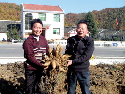 野人谷镇农技服务中心2008年引进雪莲果,先后在东蒿、西蒿高山试种。今年在黄砂土上试种成功。经过3年的探索总结,摸索出了一套适合本地的栽培管理技术。图为在黄砂土上试种成功的雪莲果。