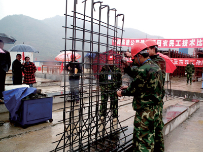 16日,十房高速公路农民工技术大比武活动经过3天激烈的角逐,圆满落下帷幕。此次活动,从组织、筹划、培训到理论测试和现场操作,前后历时近两个月,来自全线13个合同段的100余名一线施工人员参加了比武。经过激烈比拼,第五、六、十二合同段最终胜出,获得团体总分前三名,第十、十一合同段获活动组织奖。 (金伟忠 许琛然 摄)
