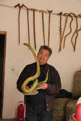 一个个毫无生命力的树根藤根被赋予灵性,或矫龙,或神龟,或仙鹤……形态各异,栩栩如生。昨日,记者在门古寺镇看到,这位年过花甲的残疾老人左明华,身残志坚,用一件件树根藤根上雕刻出栩栩如生的形象,传承了古老的民间艺术,扮靓了自己的人生。