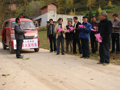 入冬以来,为了切实做好森林防火工作,确保有效预防和扑救森林火灾,保证人民群众生命财产安全,青峰镇以责任到位、宣传到位、人员到位、处罚到位四个到位把森林防火工作作为当前的大事要事来抓。图为青峰镇组织护林防火宣传车深入全镇26个村宣传森林防火知识。 (桂涛 摄)