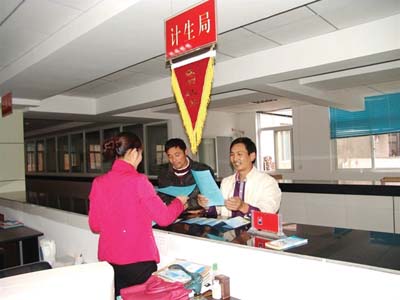 本着以人为本的工作思路,县计生局在行政服务中心开辟计生服务“便捷窗口”,方便外出务工人员办理《流动人口婚育证明》。为确保他们在能及时办理好流动人囗婚育证明,计生局窗口还设立了热线电话,为节假日前来办事的群众提供方便。图为计生局窗口工作人员为前来办事的群众宣传《中华人民共和国流动人口管理办法》和《湖北省计划生育条例》。 (邹正奎 张伟 摄)