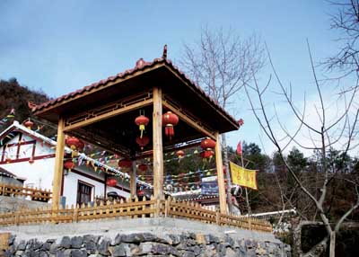 “凉亭修在道场边,地下用的水泥焊,四个柱子竖在半天,琉璃瓦盖上边……”唱歌的老人名叫高辉秀,今年已经66岁了,是南潭村当地有名的民歌手。老人口中所唱的就是以当地民歌改编的,内容反映的是由原有农舍改造而成,名为“高占眼山庄”的农家乐。高占眼山庄有三大间瓦屋两间偏屋,在宽敞的水泥院落边建立了个休闲小亭子,亭子内摆放着一个木质小方桌和四把小方凳,以供游人休闲娱乐。在南潭村,像“高占眼山庄”这样由农舍改造的农家乐且现已开业的有8家,还有7家正在改造之中,现已具备日接待量200人(次)以上的规模。