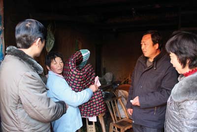 岁末年尾,红塔乡党委、政府高度关注困难群众生活,领导干部带领专班分别深入到各个困难户家中,嘘寒问暖,并为他们送去御寒物资、慰问品和现金。图为该乡干部在红塔乡高碑村3组村民李宏然家中慰问。