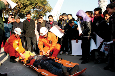 为有效维护今冬明春社会政治稳定和治安秩序平稳,28日,县公安局、交通局、交警大队围绕全县冬季“三项整治”行动,在唐城小区举行消防救援演练,现场为群众讲解传授消防安全知识和应对事故的技巧,有效地提升了市民消防安全意识和处置能力。图为消防救援演练现场。 (闻燃 杨晶晶 摄)