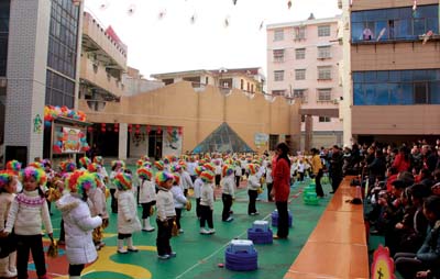 在表演中,家长成群结队地和孩子们一道来到幼儿园。通过观摩和参与互动表演、亲子游戏等活动,增进了家长对孩子在园活动情况的了解,密切了家长与教师之间的情感,同时让家长真切体会到陪伴孩子成长的重要以及在陪伴孩子成长过程中无法替代的快乐。据悉,此次表演为期一天半。图为家长与幼儿互动表演的现场。