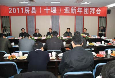 3日下午,县委、县政府在十堰龙安大酒店举行2011年房县(十堰)迎新春团拜会,邀请市领导和曾在房县工作过的领导和部分房县籍在十堰工作的领导欢聚一堂,共叙情谊,共话房县发展新变化。副市长师永学,市老领导罗金昌、罗正保、何儒方、吴修亭等曾在房县工作的领导和部分房县籍在十堰工作的领导出席团拜会。