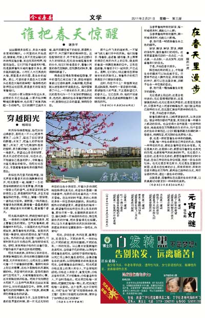 这时,你在干什么?倚窗微笑还是远眺凝思,抑或吟一首迎春的诗篇,那破窗而入的气息,不正是盼望已久的春天么。它已在我、你、他的不经意间被惊醒,并且迅速地拥抱着我们,温暖而炽烈。