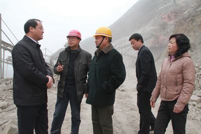 21日,青峰镇党委书记丁杰等来到镇和顺石材厂检查企业生产情况。该镇共有企业35家,2011年预计完成工业产值4.6亿元,增长21%,完成税收400万元。目前全镇已有六里峡电站、和顺石材、金钻石石材、建筑公司等10家企业开工生产,截止二月底可实现工业产值7100万元,实现税收80万元。第一季度预计实现工业产值1亿元,完成税收120万元。