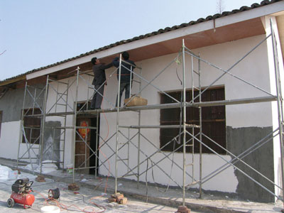 2月24日,化龙堰镇古城村一组居民刑成道家中一片忙碌的景象,施工人员正在为其房屋粉白外墙、安装封檐板。据了解,截止当日下午4时,竹房城镇带房县片区18个县直驻村帮建工作队已全部进村入驻,并与乡镇、村积极沟通协调,各项建设工作正在有序展开。