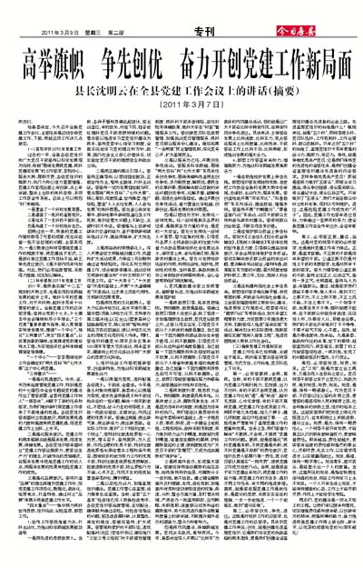 县长沈明云在全县党建工作会议上的讲话(摘要)