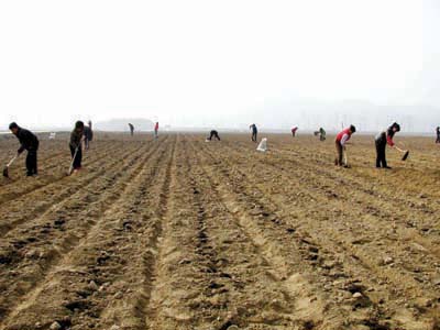 7日上午,在军店镇中药材GAP示范园里,30多名工人正在神农本草中药饮片有限公司管理人员的指挥下,进行中药材的春播。据了解,该中药材示范园今年计划春播药材400亩,品种有柴胡、黄芩、板蓝根、地黄、川麦冬、知母、丹参、荆芥等。截止目前,已经播种完成280亩。(丁波 刘林 摄)