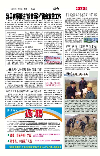 今年以来,为了确保各项惠农补贴资金及时、准确地发放到农民手中,县财政局认真贯彻落实有关惠农补贴政策,加大宣传力度,强化责任约束,狠抓基础工作,严肃补贴纪律,“粮食两补”资金发放工作正有序推进。目前,已下拨“粮食两补”资金2750万元,发放《致农民朋友的一封公开信》10.5万份;预计3月31日前将2011年度 “粮食两补”资金打入农户“一折通” 账户;4月1日起农户可凭“一折通”直接到乡镇信用社领取“粮食两补”资金。