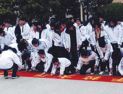 日前,为深入推进省级文明城市创建,县一中举行了“创文明县城,建和谐校园”青年志愿者活动。活动中,全校学生在“小手拉大手,共创文明城”的横幅上写下自己的名字(如图),郑重宣誓做文明人,为文明创建做贡献。该校青年志愿者还深入街头,向市民发放《房县文明市民守则》和《致全体市民的一封公开信》。