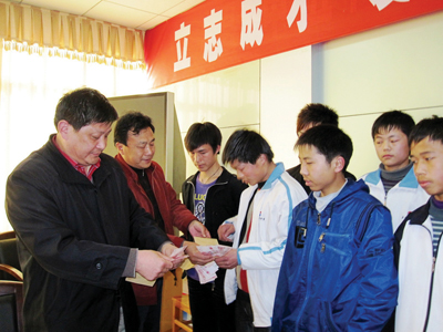日前,“励志成才,爱心助残捐赠活动”在县一中举行,爱心企业高飞电业有限公司带着对残疾学生的深切关怀,为12名残疾高中学生每人送上1000元的捐赠助学金。