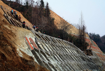 1日,记者在谷竹高速房县段窑淮乡铺沟建设工地看到,305省道(铺沟段)的改线工程已基本完工,建设者正在实施公路挡土墙、土工织物植草等后续建设工程。据了解,谷竹高速305省道(铺沟段)改线工程全长0.444km,挖土石方5084立方米,填方4647立方米,浆砌挡墙1802.1立方米,土工织物植草1409.2㎡。