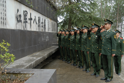 4月3日,武警房县中队组织官兵到凤凰山烈士陵园开展“践行当代革命军人核心价值观,永远做党和人民的忠诚卫士”主题教育。官兵们在十八烈士公墓前缅怀了革命先烈的丰功伟绩,重温了忠诚卫士誓词,清理了陵园内的树木残枝和白色垃圾。通过教育引导现场体现,进一步坚定了官兵听党话、跟党走,永远做党和人民忠诚卫士的信念。 (青庚申 摄)