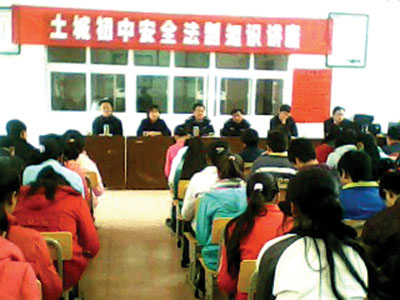 7日下午,土城初中邀请该镇公安、交警、卫生防疫等部门负责人,为全校师生上了一堂“法律知识、交通安全和春季流行病的知识”课,进一步筑牢构校园安全防火墙。 (刘强 摄)