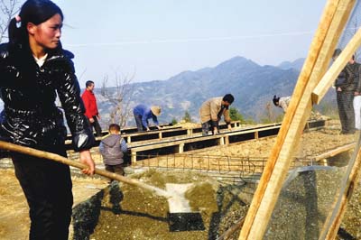 6日,中坝乡中坝村的群众正忙着建设密集型烤烟炉。为进一步规范烟叶烘烤,实现提质增效,农民增收,该乡采取有力措施,加大密集型烤房的建设力度,为下步烤烟生产打下坚实基础。 (赵晓双 摄)