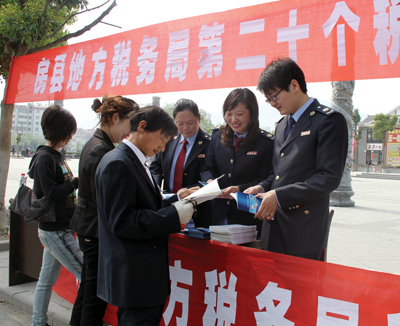 4月是全国第二十个税收宣传月,20日上午,县地税局组织干部职工在唐城广场开展了税收法律法规宣传咨询活动,当日共发放各类税收宣传资料2000多份,接受纳税人咨询500余人次,受到纳税人好评。(赵爱平 付斌 摄)