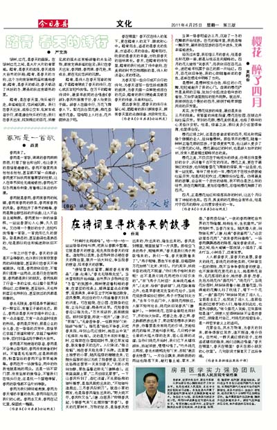 春雨是不知疲倦的歌者,春雨是不会停止歌唱的,春雨没有疲惫的时刻。不管是毛毛细雨,还是淅淅沥沥,粉墨登场的春雨不会早早地谢幕。春雨在开一场演唱会,雨中的你我他就是她的观众。这是一场不需门票、没有坐席的演唱会,不管我们在低头行走,还是找一个屋檐停留,春雨的歌唱都不会片刻停歇。