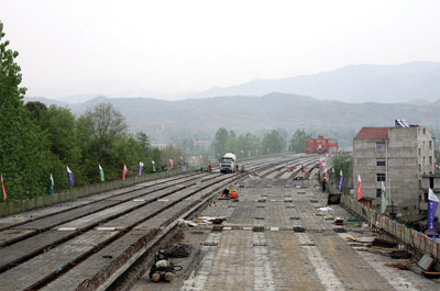 记者日前在总投资8000万元、主桥长1597米的谷竹高速公路A17合同段控制性工程——房县桃园特大桥建设现场看到,整个工地一片繁忙,工人正忙着架设T型桥梁。目前,该桥已完成工程总量的70%,桥梁下部工程全部完成,预制T梁130余片已架设90片,工程建设进展顺利。整个工程预计将于今年9月完工。