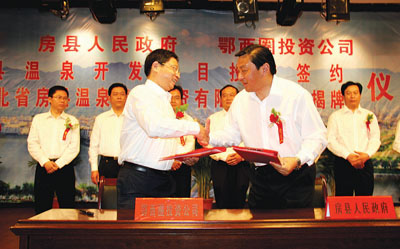 4月29日,由房县人民政府、湖北省鄂西生态文化旅游圈投资公司投资6亿元开发的温泉项目在霖泓会议中心正式签约,湖北省房县温泉旅游投资有限公司正式挂牌成立。