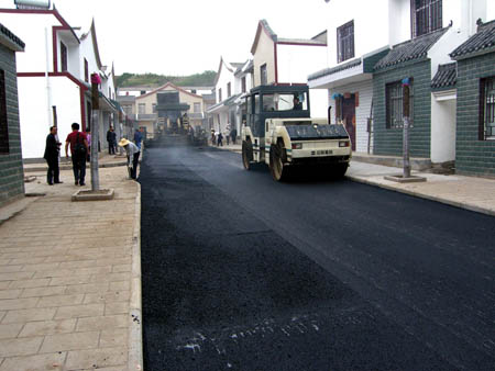 15日,记者在化龙堰镇古城村采访时看到,县公路局大型铺路机正在缓缓驶进古城小区,碾压机来回穿梭压实刚刚铺上的柏油路面,两条整齐宽敞的环形路,把古城小区装饰的清新典雅。据了解,此次黑色化道路改造总长度约500米,路宽6米,建设总投资约30万元。目前古城村群众休闲广场踩板已经全部铺设完毕,正在进行美化亮化收尾工作;村委会正在抓紧施工,预计本月底主体工程可以完工。 (刘冲 摄)