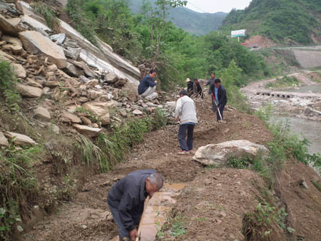 14日下午,十房高速公路十三标沙沟河6号大桥9至10号之间突然突然发生山体滑坡,堵塞了其间两道堰渠,其中靠近10号墩的一道堰渠侧墙也随着滑坡沉陷严重(如图),直接影响下游千亩农田灌溉问题。灾情发生后,十房高速省指挥部负责人第一时间赶到现场查勘灾情,并与施工单位一道研究治理方案。目前,该处已纳入“三改”范畴。15日下午,十三标项经部也已经组织2支施工队伍投入到灾情现场施工中,力争在再最短时间内修复好堰渠,确保一渠清水灌溉到农田。(金伟忠 摄)