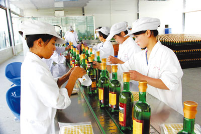 20日,记者在兴祥黄酒有限公司生产车间看到,该公司生产形势一片红火,生产线上一瓶瓶“神农皇”牌天下宴黄酒新鲜“出窖”,工人们正抓紧时间完成订单。该公司生产的神农皇系列黄酒已在武汉、重庆等地热销中。据了解,该公司预计今年实现销售2.2亿元,利税5000万元,可带动全县农民种植糯稻50000亩,为企业生产黄酒提供优质糯米原料15000吨,全县农民从糯稻种植可增收2000多万元。